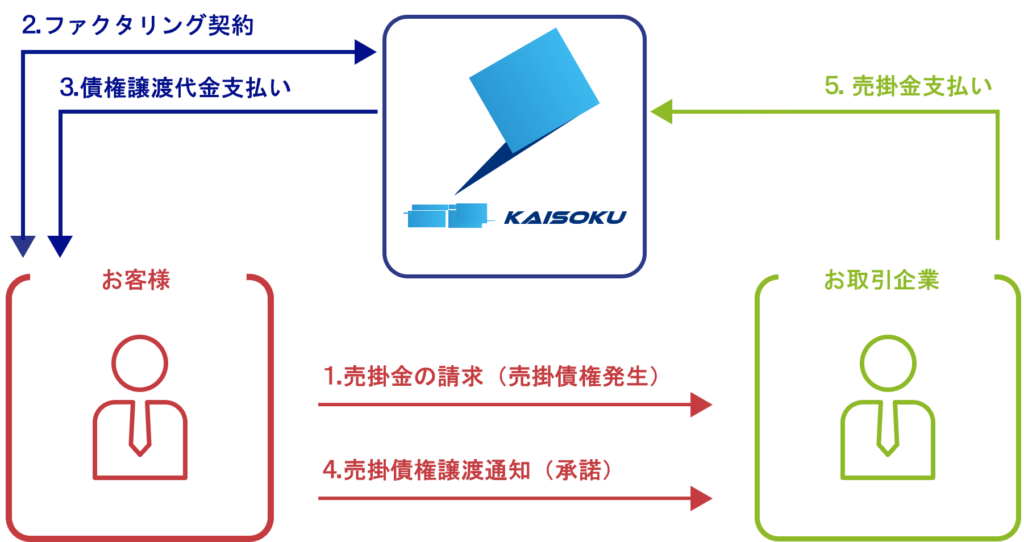 お客様がお持ちの売掛債権をファクタリング会社が買取ることによって、入金期日前に現金化できます。